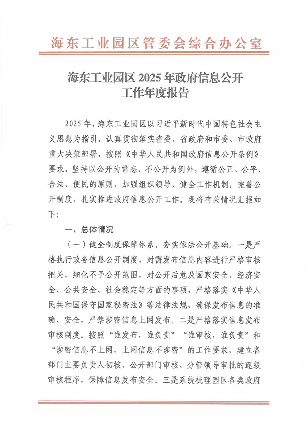 海东工业园区2025年政府信息公开工作年度报告